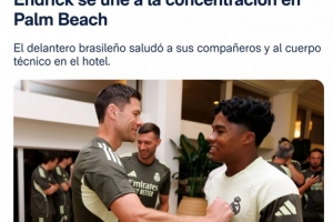 恩德里克将加入皇马在佛罗里达棕榈滩的集训。恩德里克抵达了球队下榻的酒店,在那里他问候了他的队友和哈维-阿隆索教练组。